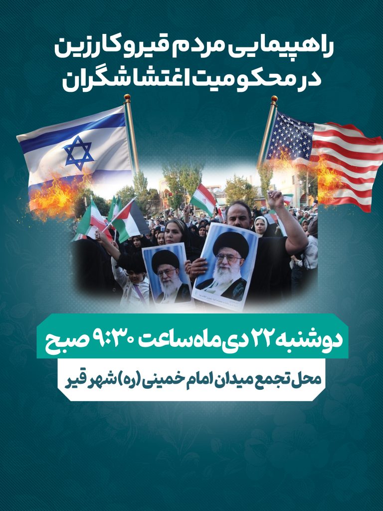 به گزارش آوای قیروکارزین راهپیمایی مردمی محکومیت اقدامات اغتشاشگران و تروریستهای مسلح در قیروکارزین روز دوشنبه در این شهرستان برگزار میشود.