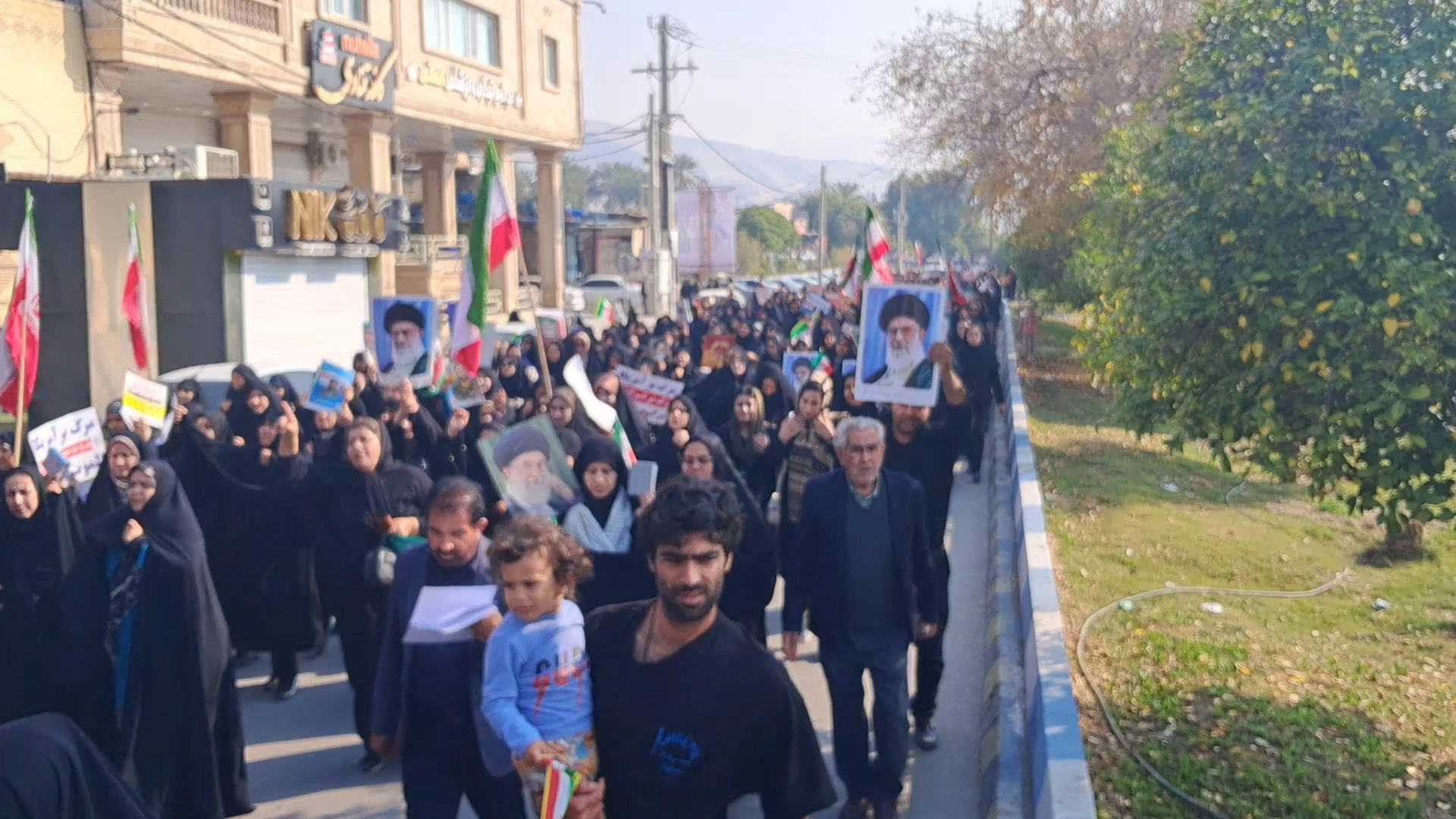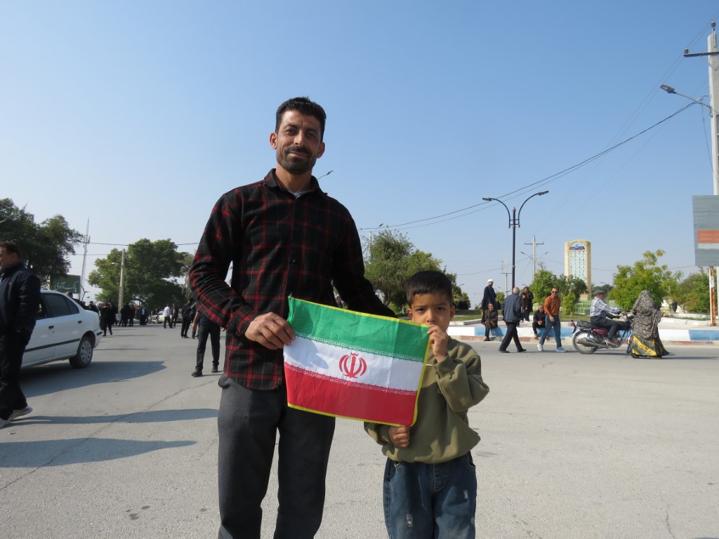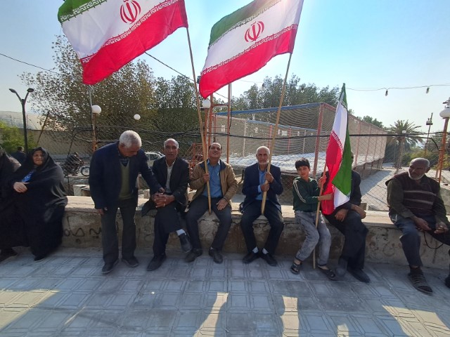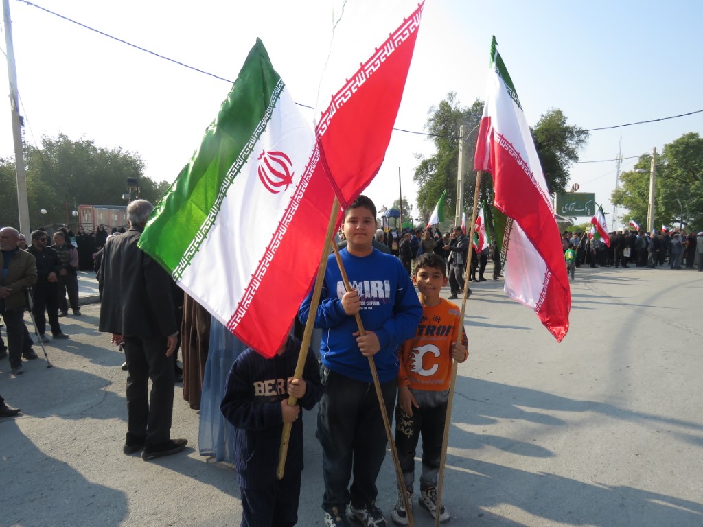 در سراسر تجمع و راهپیمایی پرچم سه رنگ و زیبای ایران اسلامی در دست تجمع کنندگان به اهتزار درآمده بود.