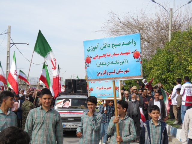 مردم شهرستان قیروکارزین در مسیر راهپیمایی با بزرگداشت انقلاب اسلامی و استقامت و پایداری بر ارزشها و اصول انقلاب اسلامی برخاسته از قیام مردم، یکدل و یک صدا فریاد «مرگ بر آمریکا»، «مرگ بر اسرائیل» و «الله اکبر، خامنه ای رهبر» با مشتان گره کرده سر دادند تا بار دیگر با آرمانهای معمار کبیر انقلاب تجدید بیعت کنند.