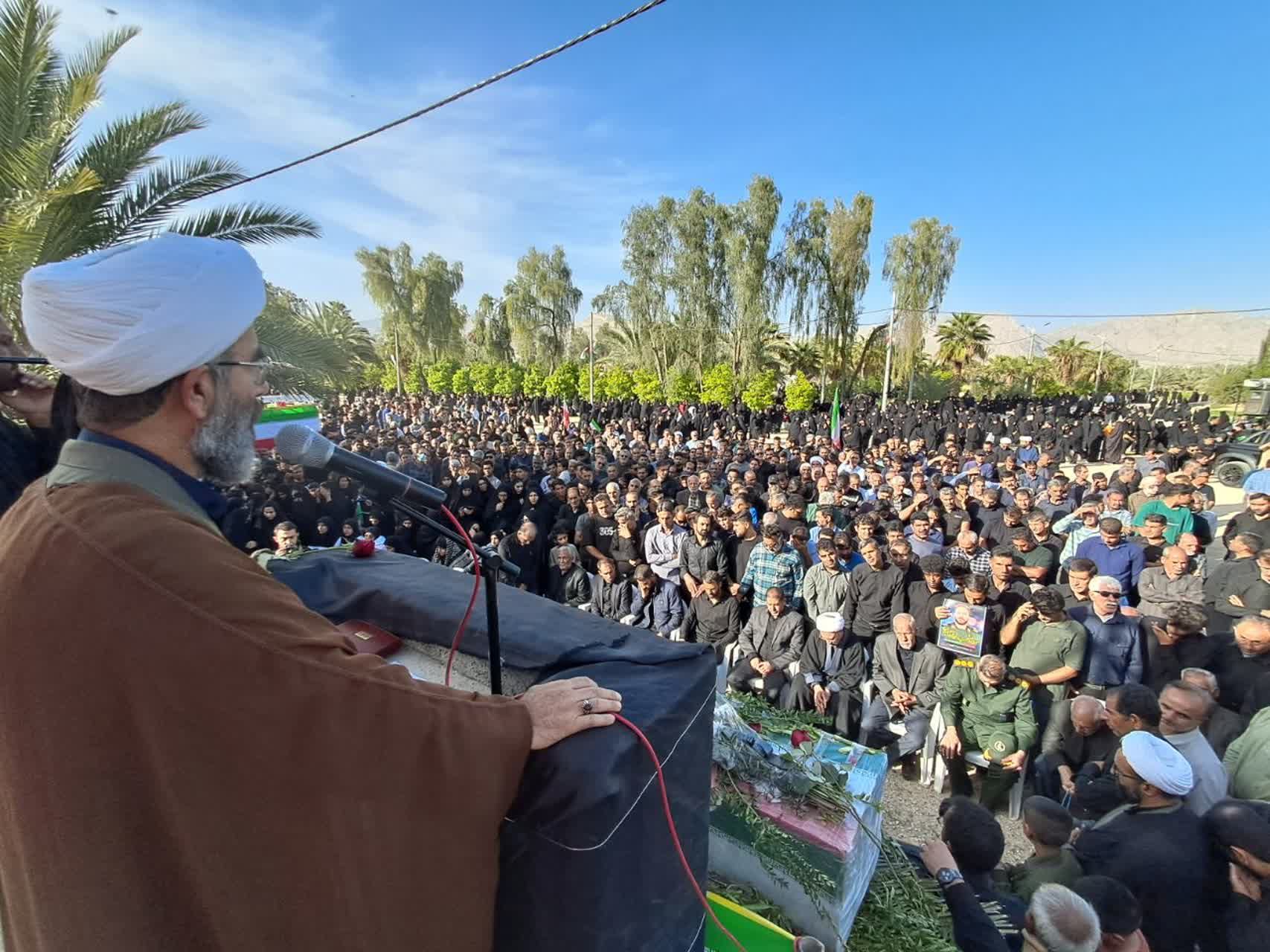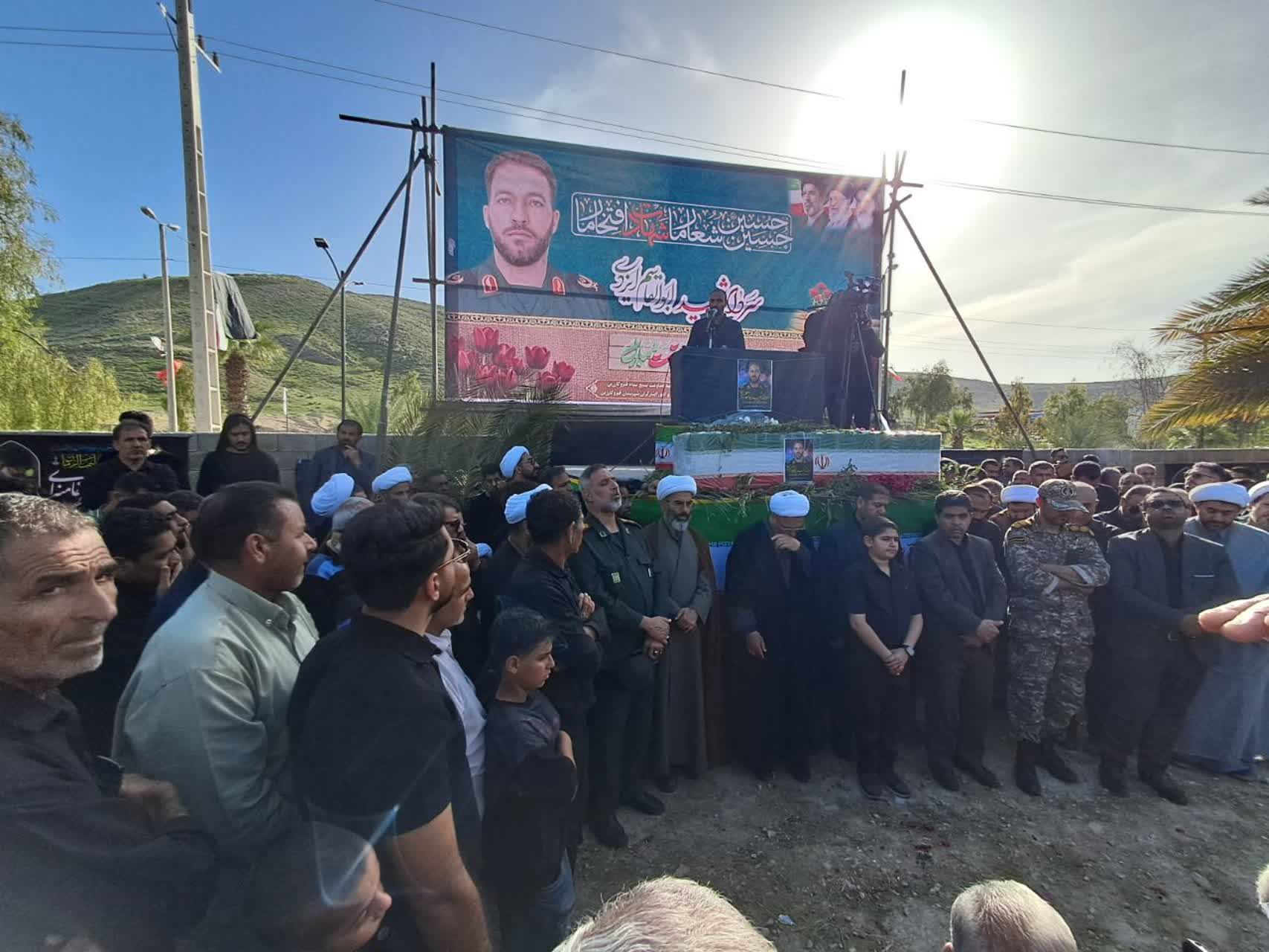 پیکر مطهر این شهر والامقام با حضور خانواده معظم شهدا، جمعی از مسئولان استانی و شهرستانی، فرماندهان نظامی و انتظامی و اقشار مختلف مردم برگزار شد و شرکتکنندگان در این مراسم با سردادن شعارهای حماسی، بر ادامه راه و آرمانهای شهیدان انقلاب اسلامی تأکید کردند.