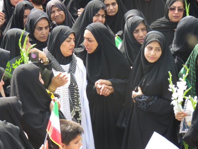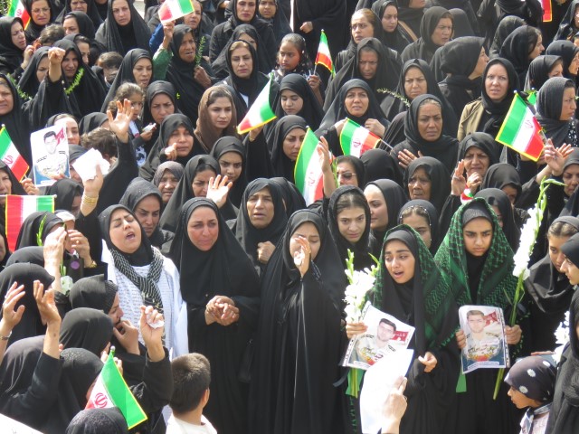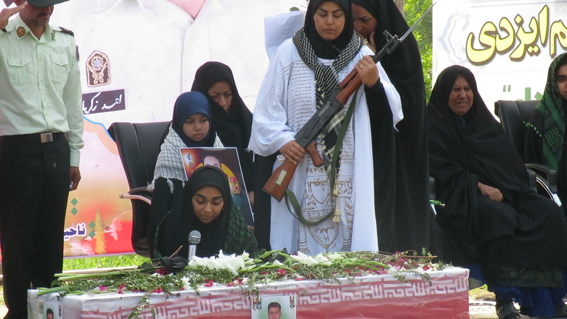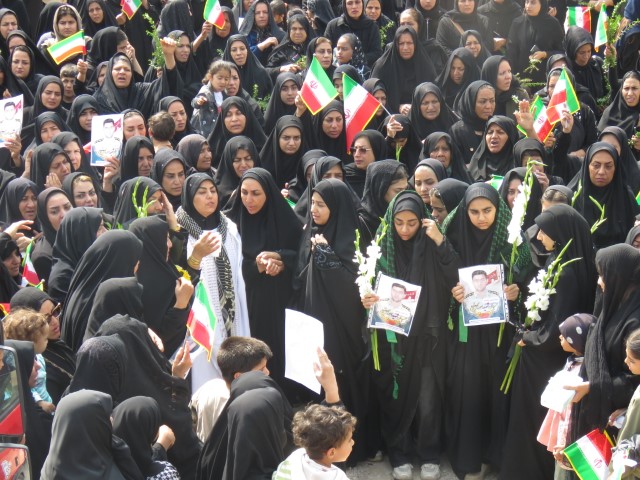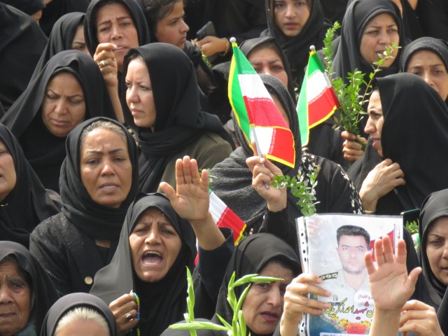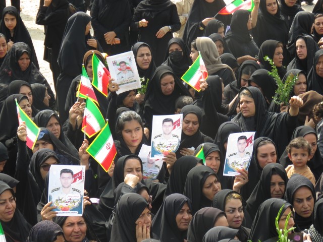 در این مراسم، همسر شهید کفنپوش با صلابت و در حالی که اشک بر گونههایش جاری بود، ندای مبارزه با استکبار جهانی را سر داد و بر ادامه راه شهیدان انقلاب اسلامی تأکید کرد.