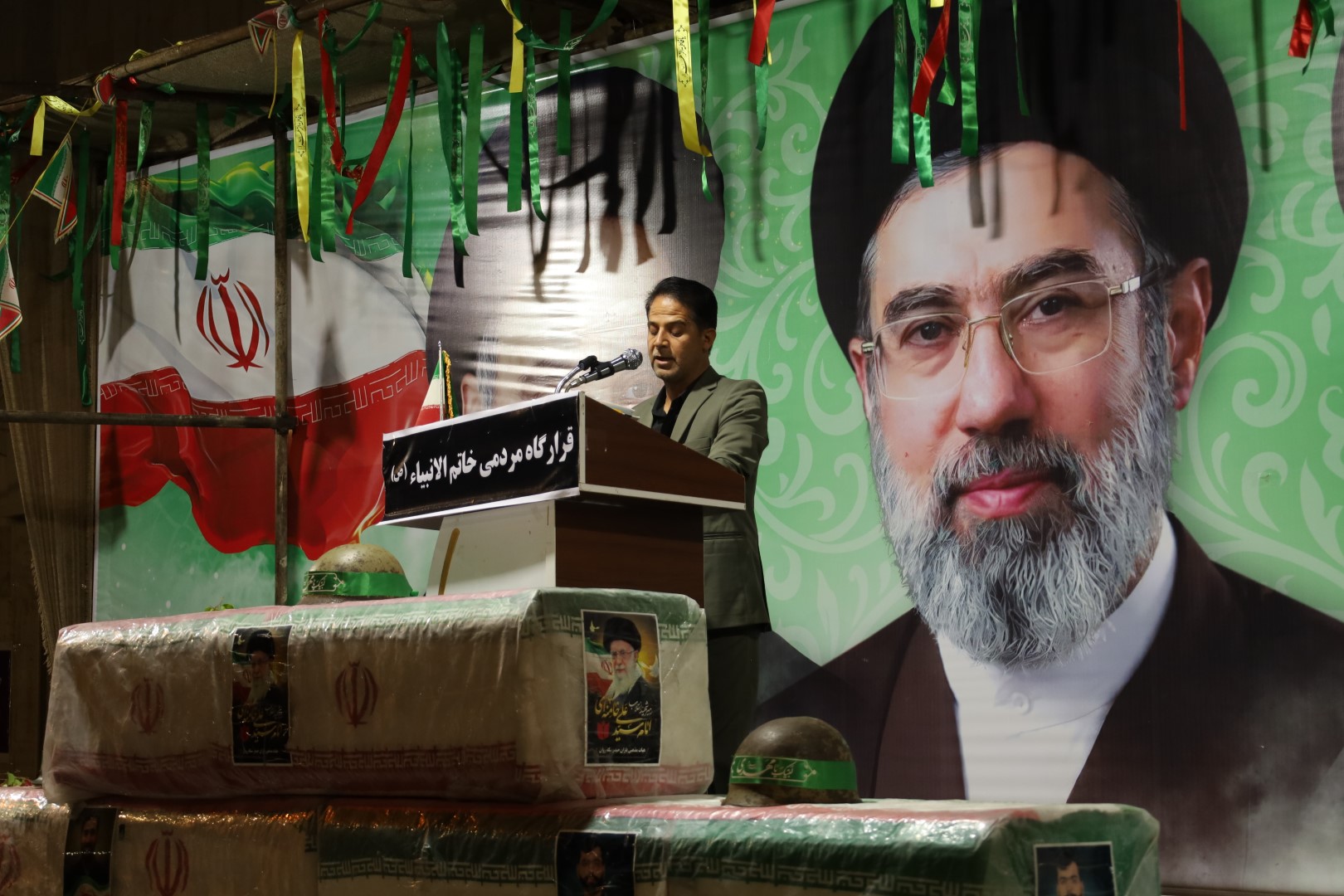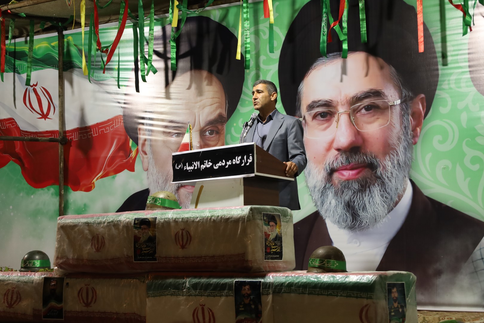در ادامه، فضای مراسم با مداحی حماسی و رجزخوانی شهدایی شد. مداحان اهل بیت (ع) با نوای «هیهات منا الذله» و اشعار حماسی درباره شهدای مدافع حرم و مقاومت، شور و شعور حسینی را در جمعیت دمیدند. همزمان، رجزخوانان جوان با سرودن اشعاری در وصف ایستادگی در برابر دشمنان، روحیه استکبارستیزی را در فریادهای «مرگ بر آمریکا» و «مرگ بر اسرائیل» جمعیت متجلی ساختند.