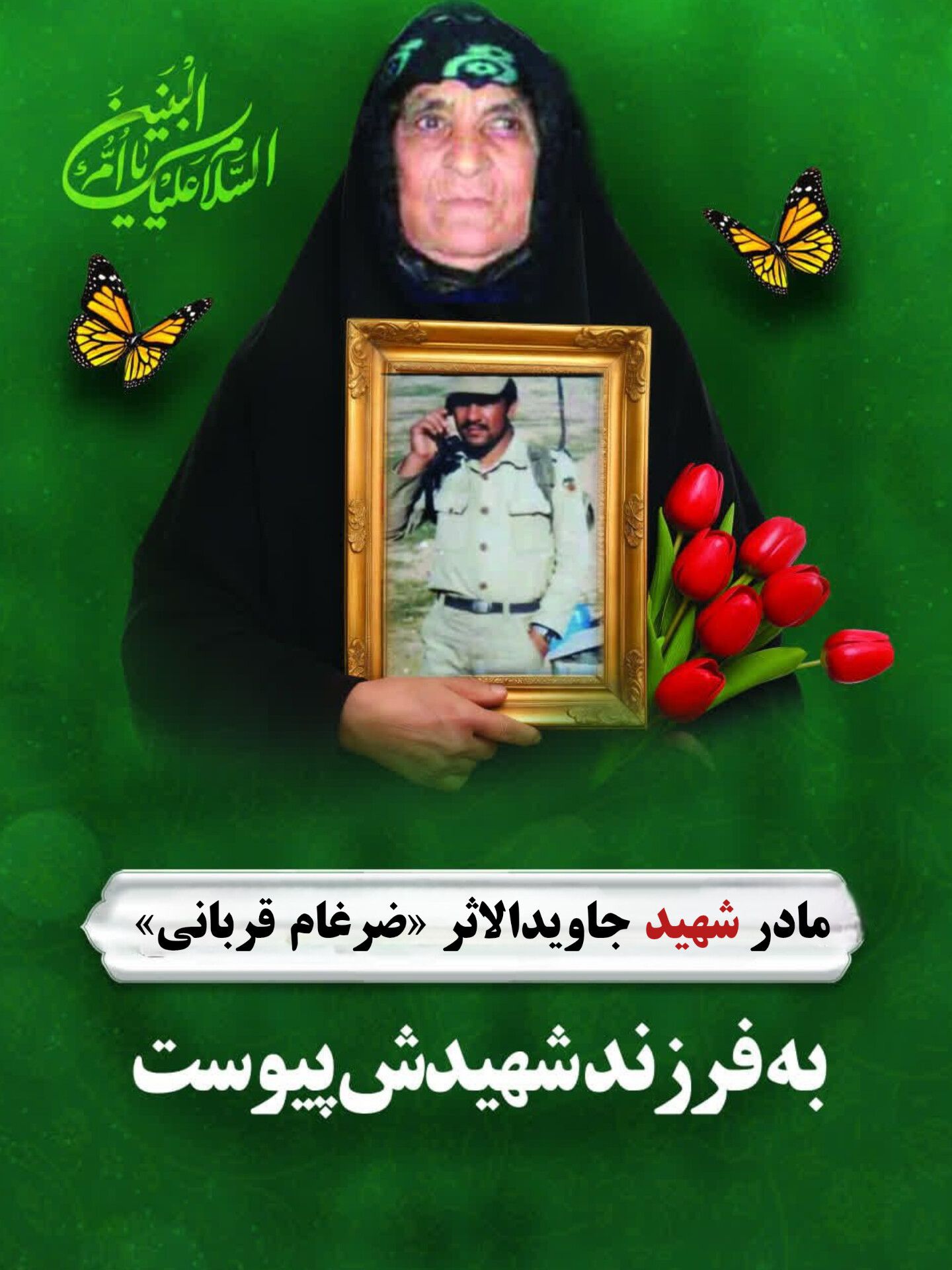 • مادر صبور و فداکار شهید جاویدالاثر «ضرغام قربانی جعفربیگلو» پس از سال‌ها چشم‌انتظاری، دعوت حق را لبیک گفت و به فرزند شهیدش پیوست.